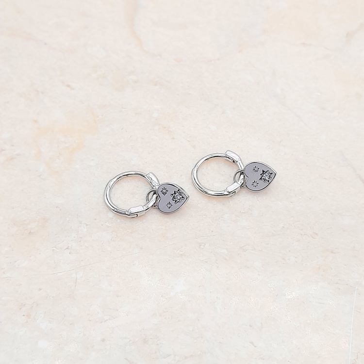 The Celeste Heart Huggies are the best new addition to your collection! Crafted from 925 sterling silver, these beauties are sure to last. Wear them alone or stack them with our Starlight Heart Stud Earrings for the completed look, they're perfect for any occassion!