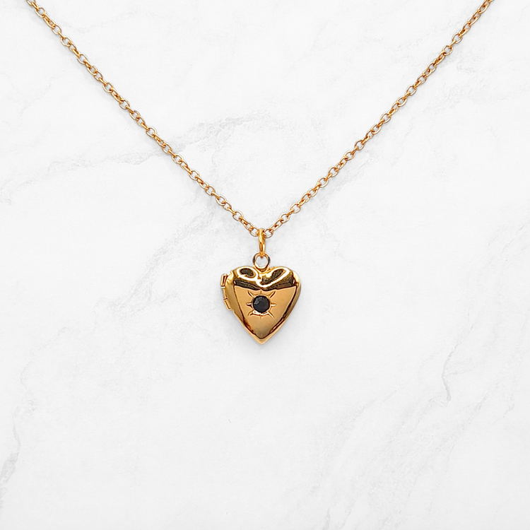 The Luna Heart Locket necklace features a deliacate gemstone at its centre, adding a touch of sparkle to it's classic heart locket design! This piece is a perfect piece for sentimental style or as a heartfelt gift.
