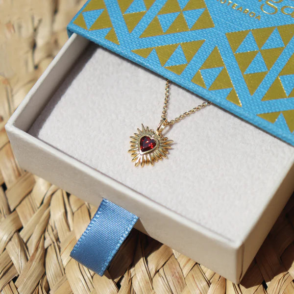 The Manawa Whero Necklace is centred around a rich ruby stone — representing aroha, courage and the life force that flows from the heart. Manawa speaks to the heart and breath of life, while Whero reflects the deep red of vitality and determination.