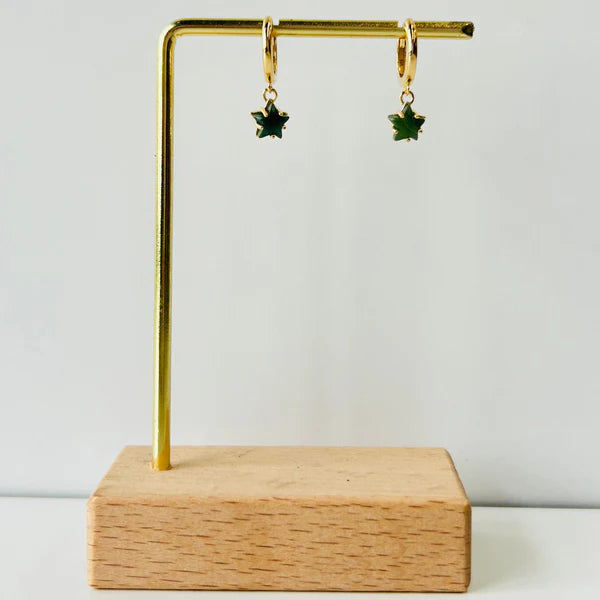 Pounamu Whetu Huggies: Elegant earrings inspired by the beauty of Aotearoa.