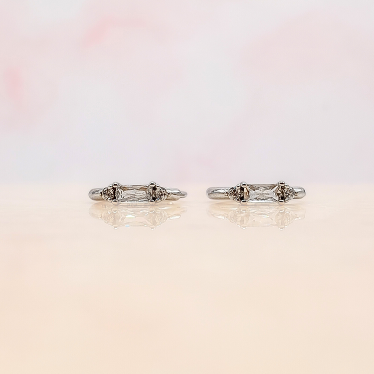 The Baguette Gem Huggies are the perfect little treat for yourself or for someone you love. This versatile piece is carefully crafted from 925 sterling silver, ensuring durability and longevity. Style it alone for a more simplistic look or pair it with our Starry Night Baguette Huggies to complete the full stack!